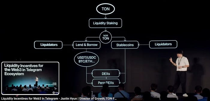 В 2023 году на TON Gateway мой основной доклад был посвящен «Стимулам ликвидности для Web3 в экосистеме Telegram». Это стало катализатором для The Open League — конкурса, направленного на помощь проектам в привлечении пользователей и капитала путем вознаграждения их такими стимулами, как айрдропы и обеспечение ликвидности. В 2024 году миллионы TON были выделены на укрепление ключевых торговых пар, таких как TON-USDT, и за короткий срок мы достигли впечатляющего объема заблокированной стоимости (TVL) в экосистеме TON.